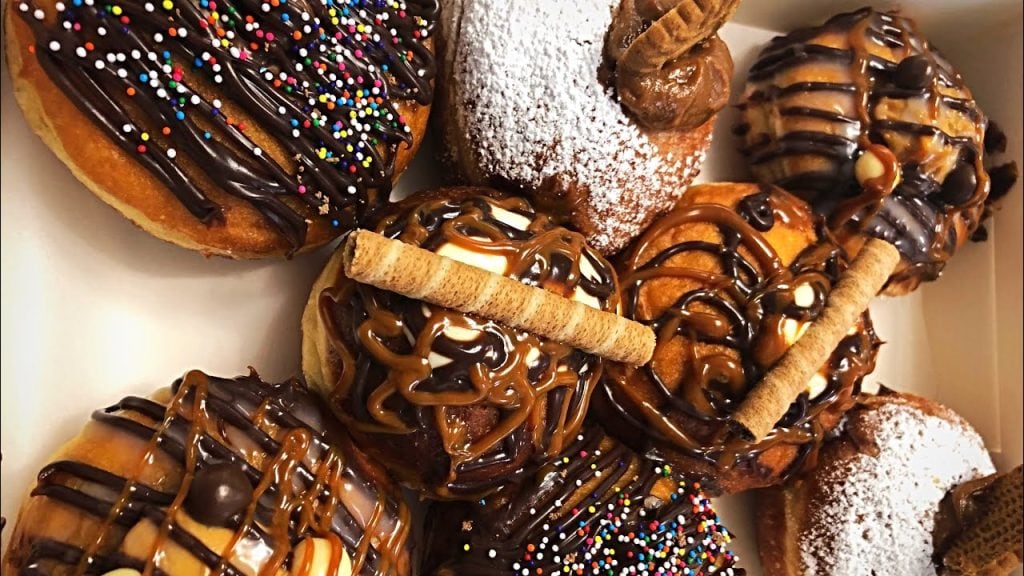 Choose from a huge range of classic favourites like glazed, cinnamon twists, old-fashioned, jelly-filled, chocolate frosted, and strawberry frosted — or indulge in gourmet creations such as Bavarian cream-filled, Boston cream, apple crumb, marble frosted, blueberry, and rich chocolate cake donuts.