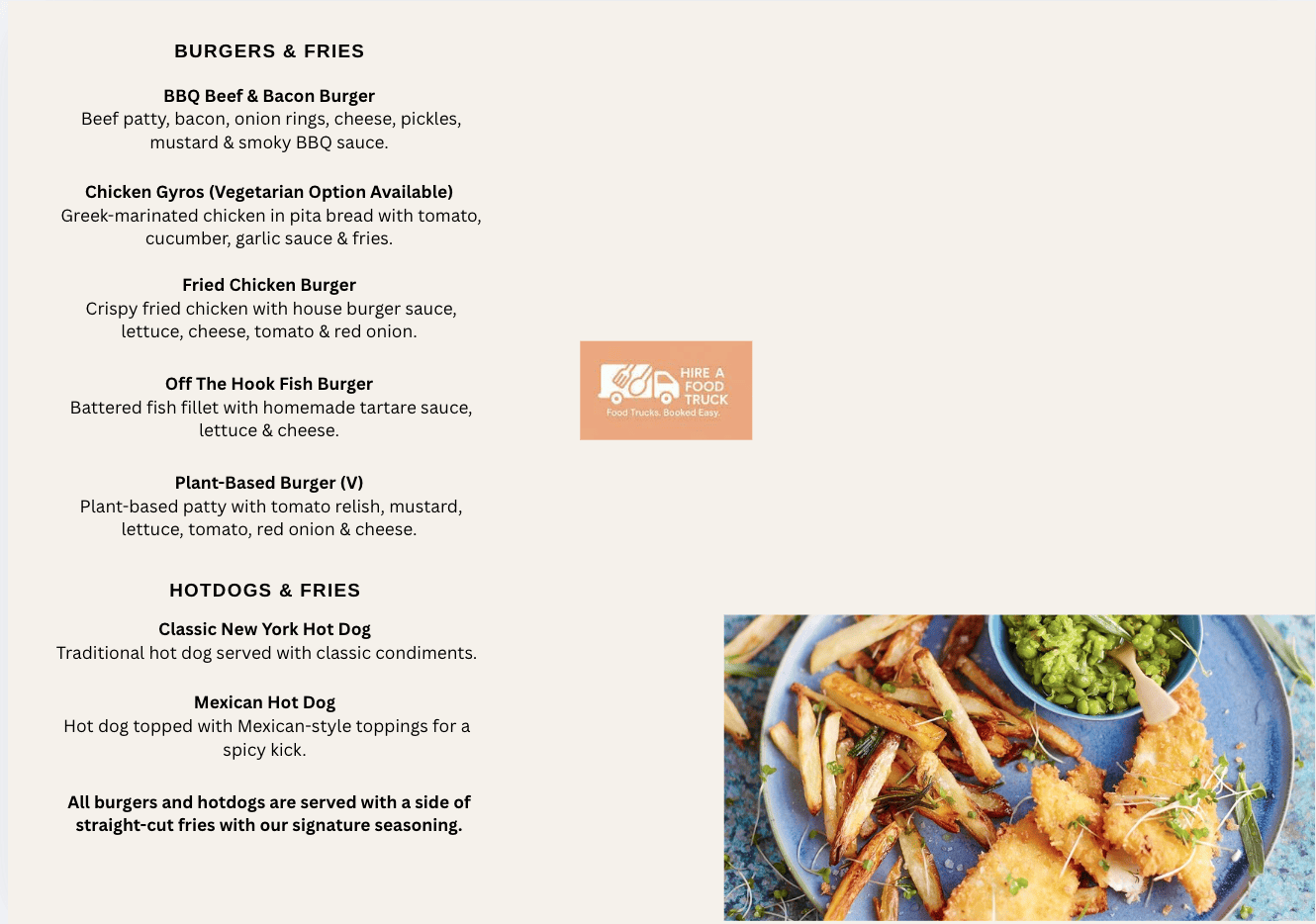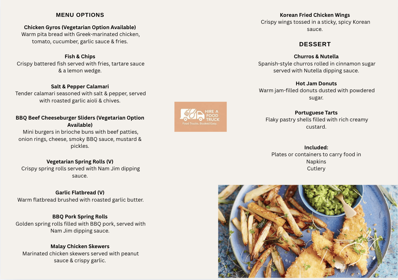 Our multi-food truck brings this timeless favourite to your event — with perfectly fried fish, crunchy hot chips, and all the sides you’d expect.