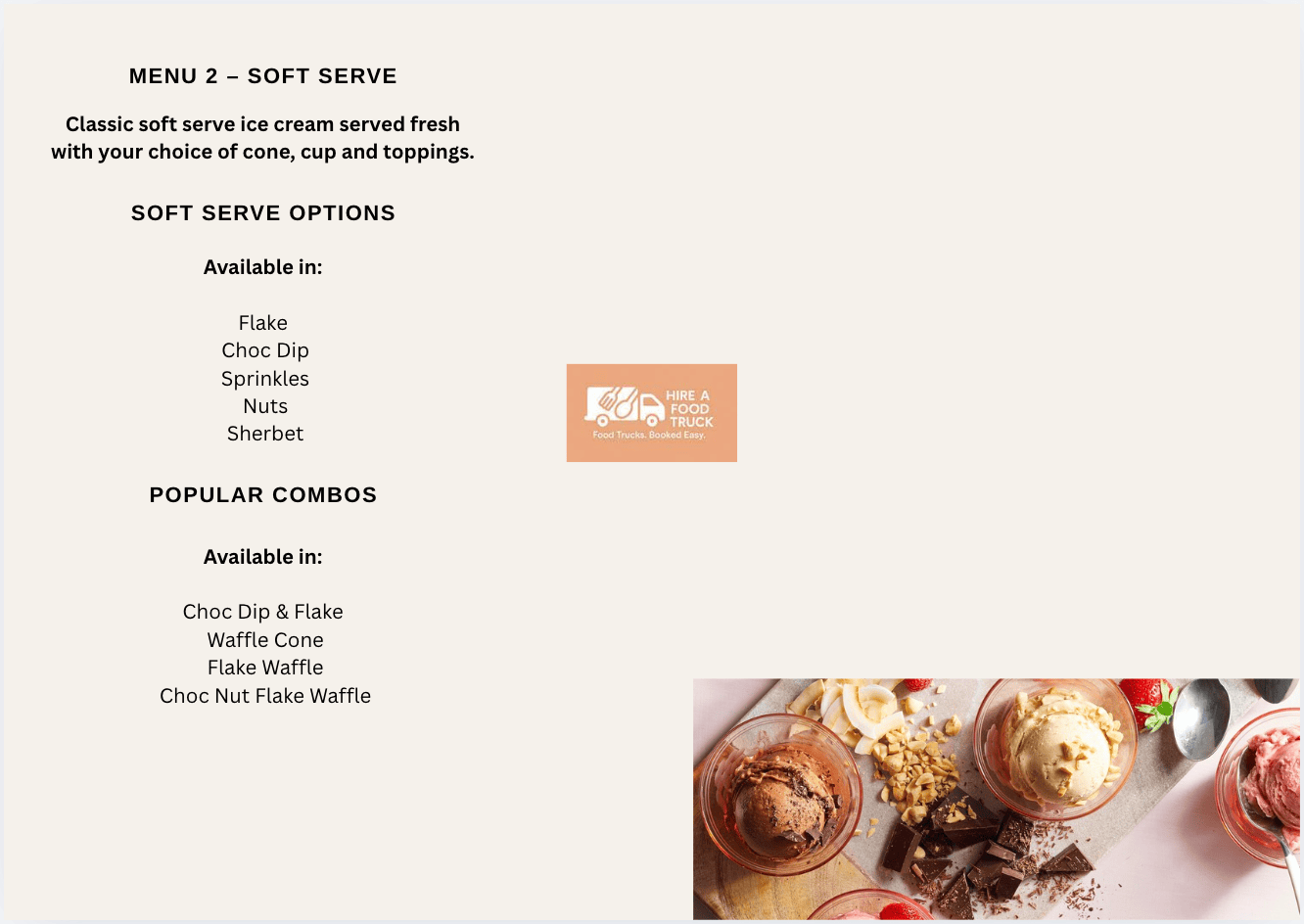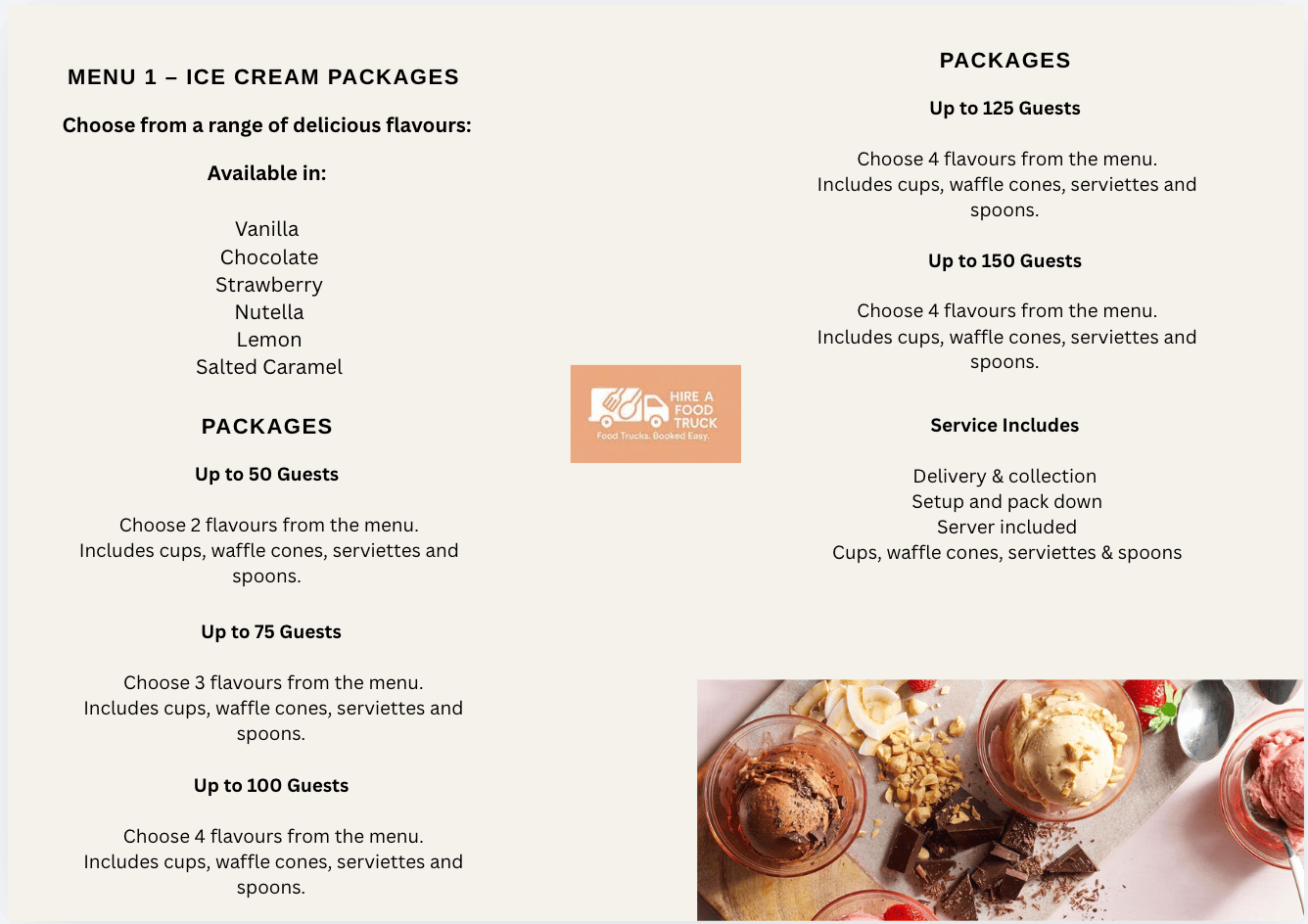 Choose your preferred menu items and we’ll come back to you with a tailored quote.