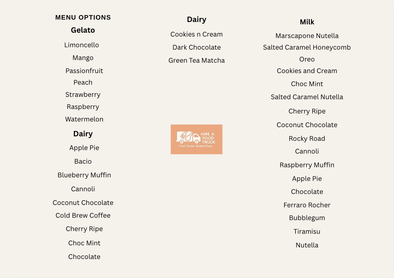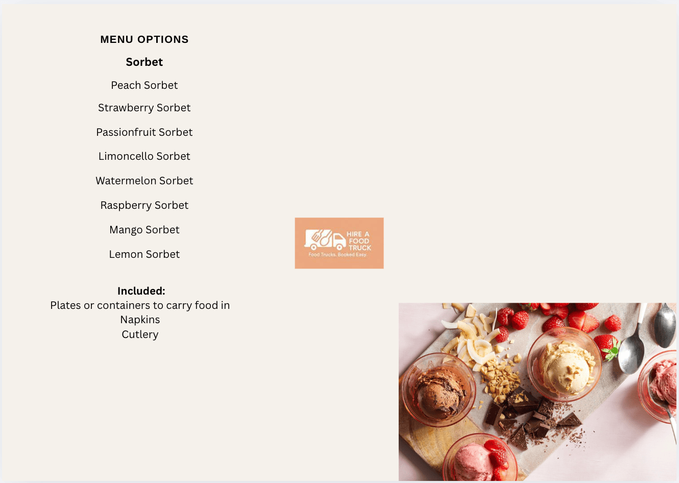 Choose your preferred menu items and we’ll come back to you with a tailored quote.