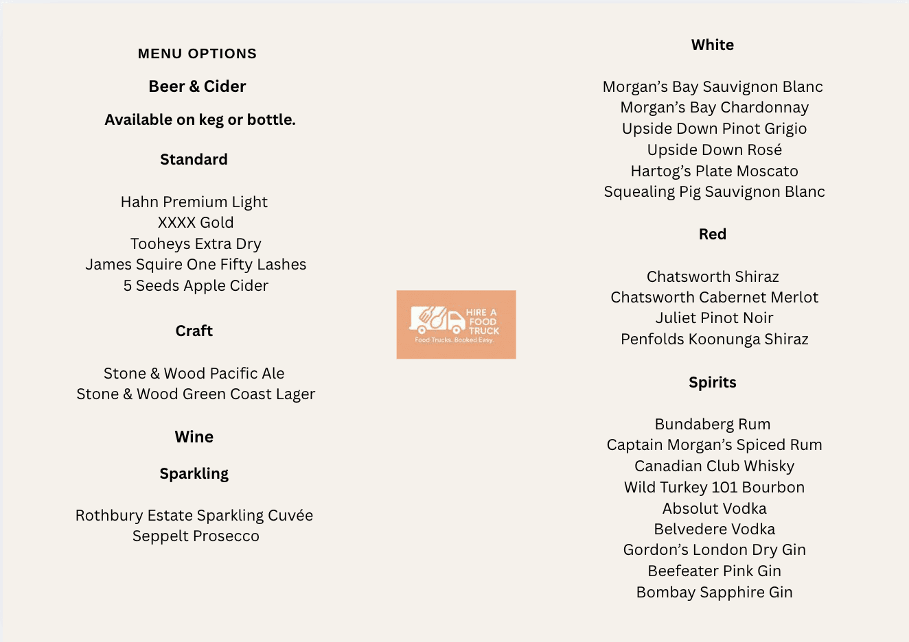 Choose your preferred menu items and we’ll come back to you with a tailored quote.