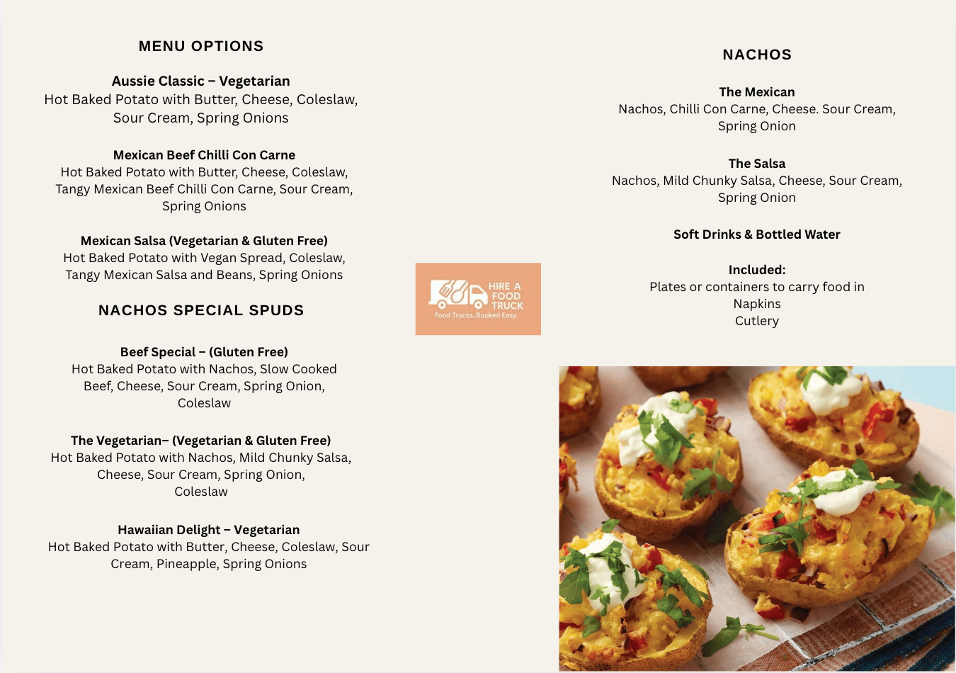 Whether you’re after a budget-friendly catering option or an interactive street food favourite, our potato truck has you covered.