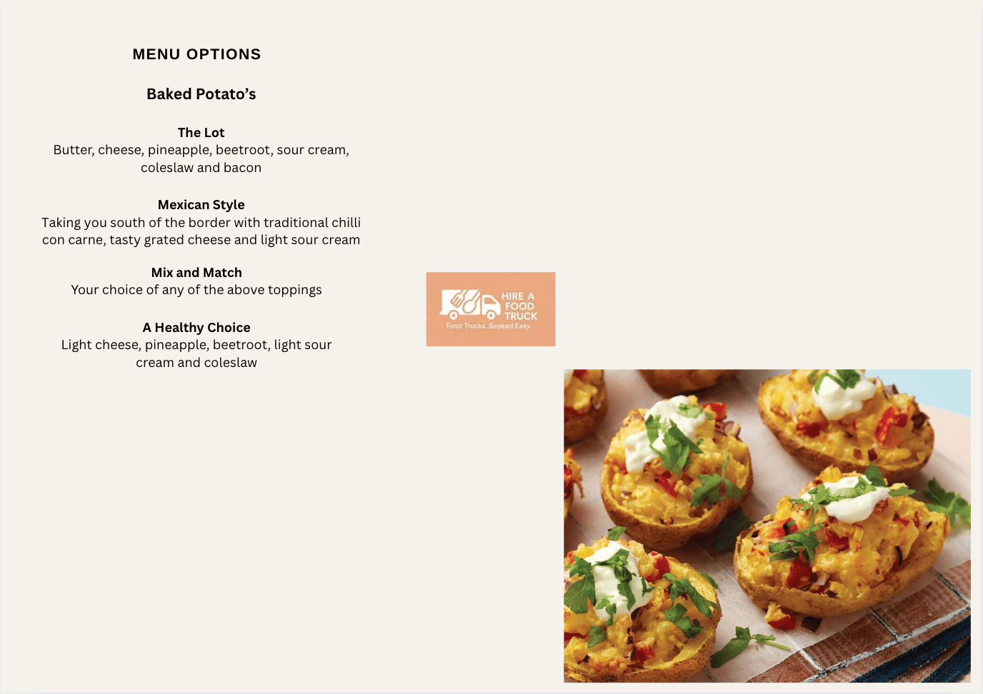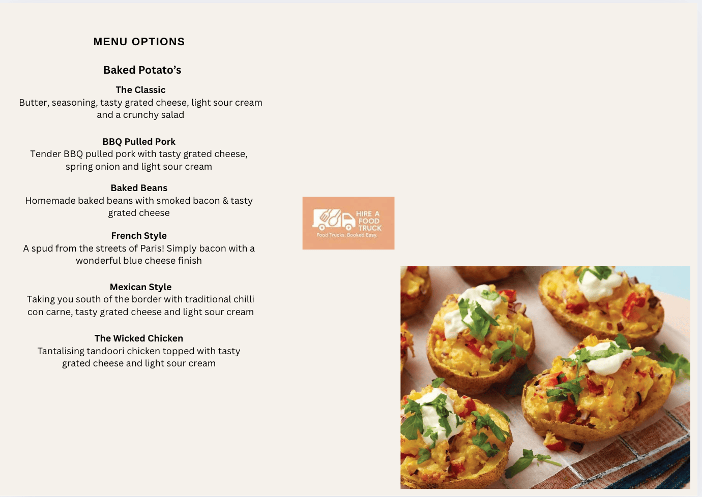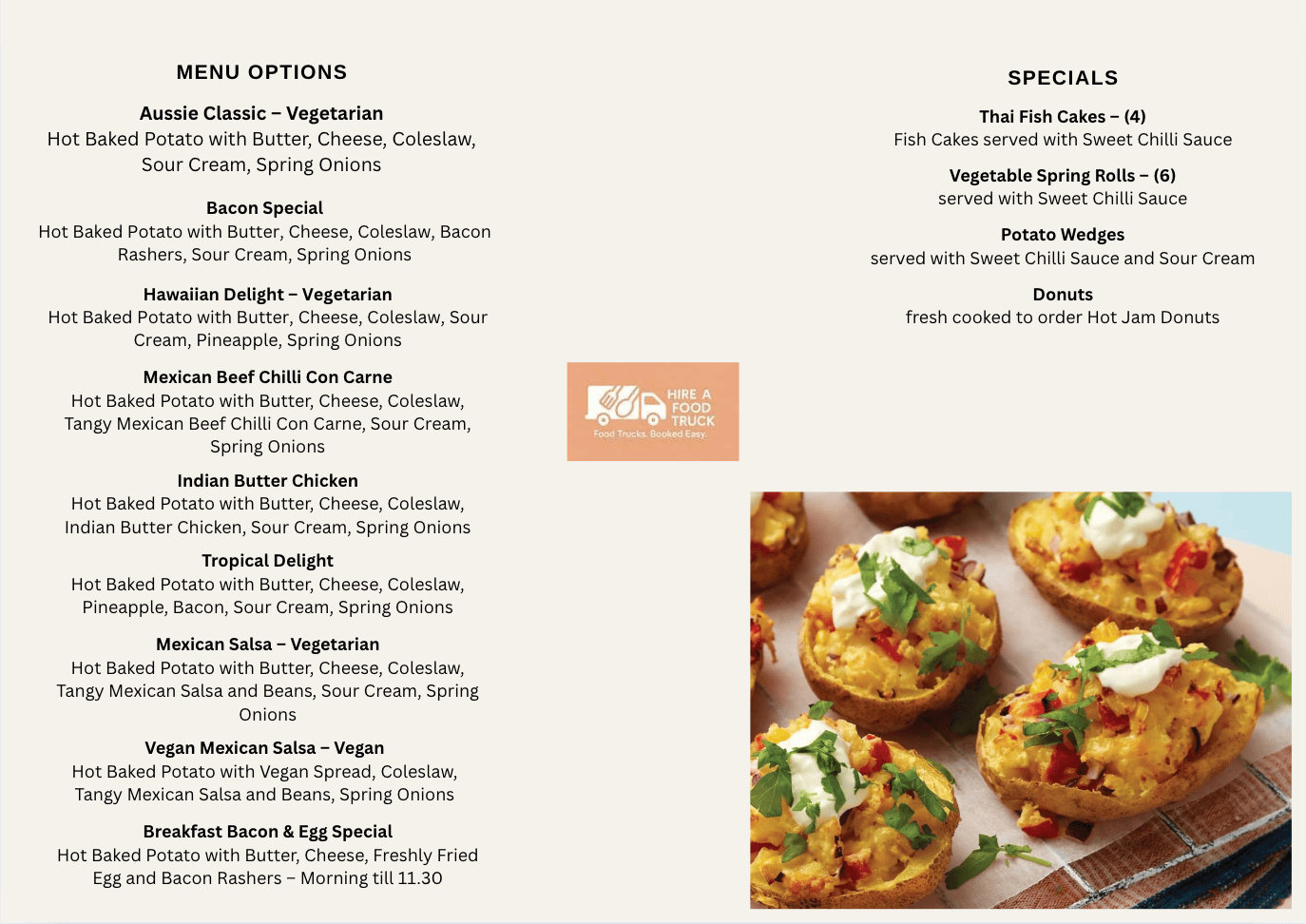 Whether you’re after a budget-friendly catering option or an interactive street food favourite, our potato truck has you covered.