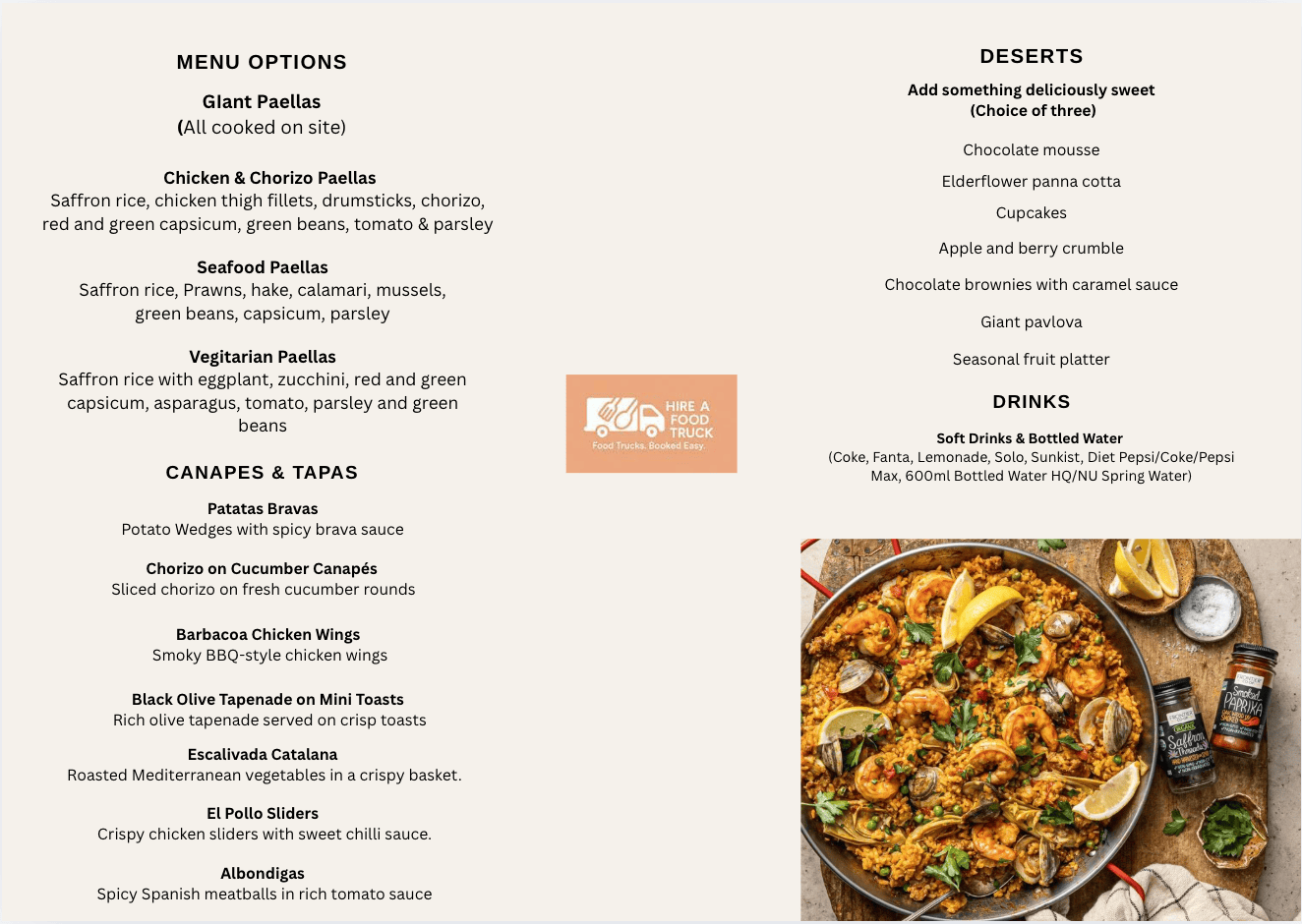 Beyond paella, we also offer a selection of Spanish-inspired street food and vegetarian delights, perfect for creating a festive and flavourful event experience.