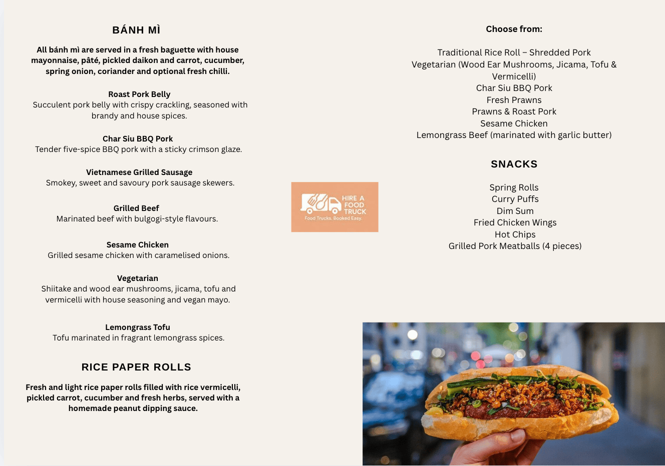 Our menu can include a variety of dishes featuring seafood, meat, and vegetarian options, all prepared to showcase the vibrant tastes of Vietnam. Popular favourites range from pho and noodle salads to banh mi, rice paper rolls, and stir-fries.