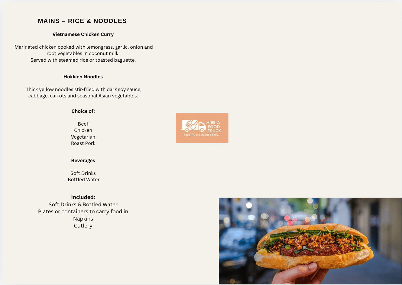 Choose your preferred menu items and we’ll come back to you with a tailored quote.